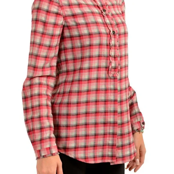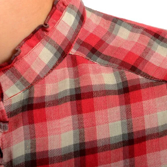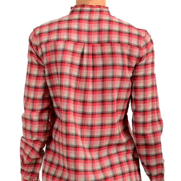 Burberry Women's Peony Rose Ruffle Detail Long Sleeve Shirt US S IT 40Country/Region of Manufacture: ChinaRetail Value: $295.00This is authentic Burberry Women's Peony Rose Ruffle Detail Long Sleeve Shirt SKU: BB-8651Model: WLSH00014606660KMaterial: 100% CottonBust: 18.5"Sleeves: 23.25"Shoulders: 14.75"Length: 27"